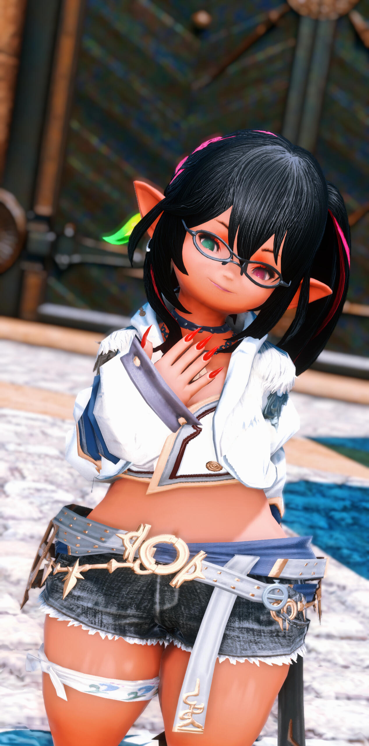 A cute and curious Miqo'te with a knack for adventure and trying out new things and meet new people but lacks the assertiveness to do so. Not soft-spoken or boisterous, she says what needs to be said but will not pass up the chance to keep the conversation going.Due to her past, she is wary to get into deep relationships choosing to keep them shallow unless she finds them to be extremely trustworthy. Because of her curiosity however, she does like to try anything once in every aspect of her life.